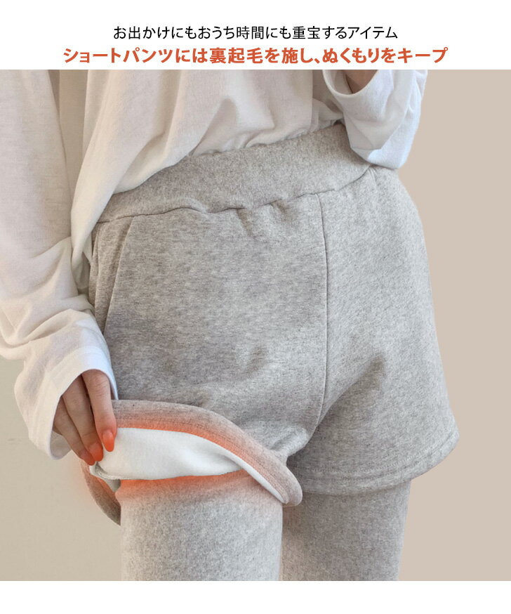 MAX1000円引クーポン配布★ 裏起毛レギンス付きスウェットショートパンツ レディース ボトムス 冬 インナー ロング レギパン スパッツ ショーパン 伸縮性 ストレッチ フィット スリム ウエストゴム スキニー パンツ 綿混 コットン混