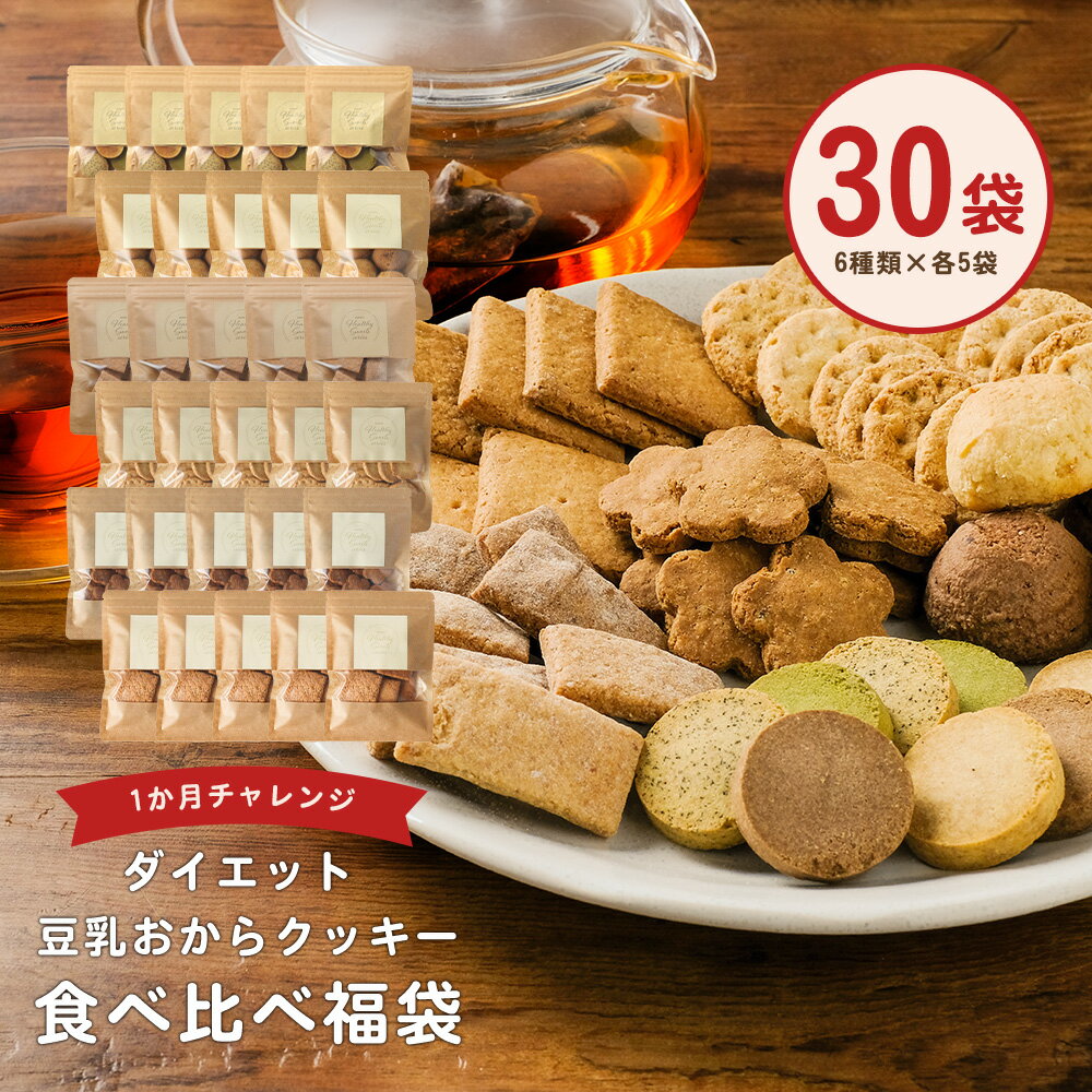 豆乳おからクッキー 福袋 約1か月分 30袋(6種各5袋)おからクッキー お試し ダイエット食品 満腹感 置き換え お菓子 ダイエットクッキーTSG mtg