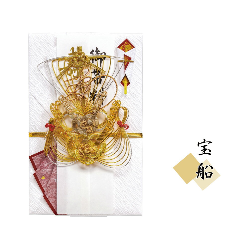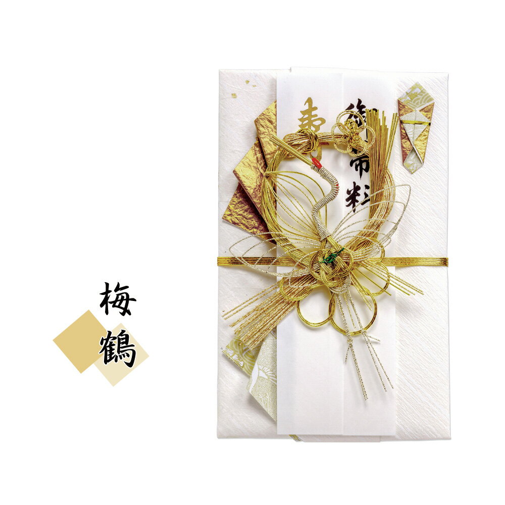 商品説明 宝船の飾りが品と華やかさのある「宝船」と、鶴の飾りと雲竜模様のきらめく本体原紙が上品な「梅鶴」の大判タイプの金封です。