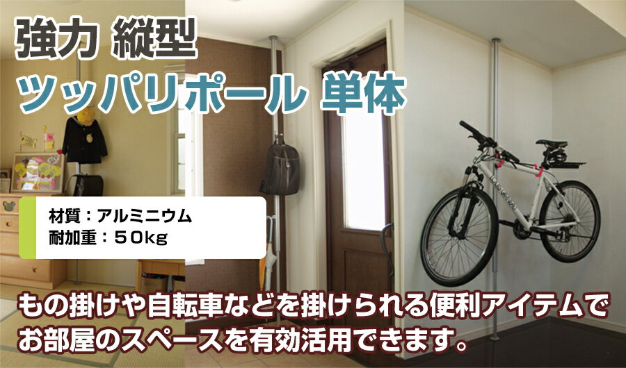 突っ張り式 縦型 伸縮ポール、つっぱり棒 ツッパリ式取付 ノンビスタイプ テンションポール ワンタッチ【強力 縦型 ツッパリポール 単体 ラフィット 】シルバー