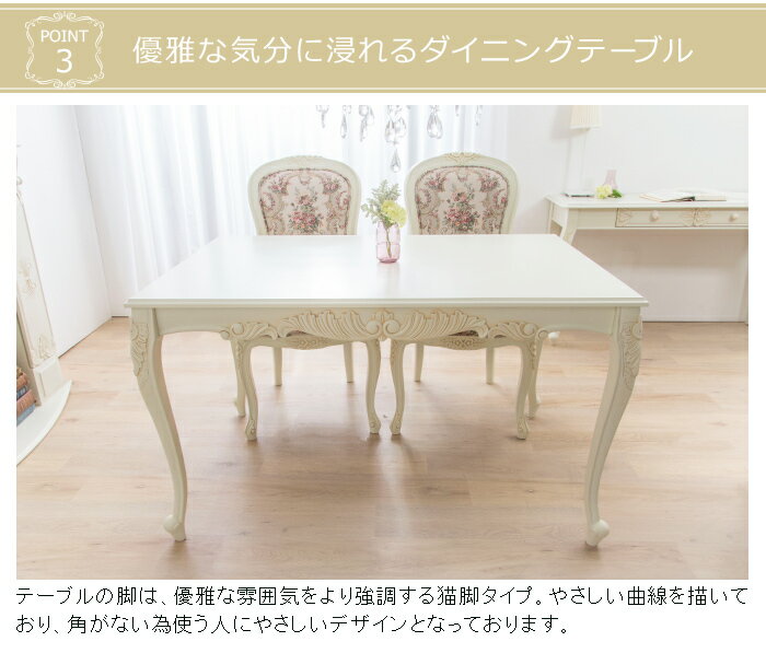○テーブルの脚はやさしい曲線を描いた猫脚デザイン。