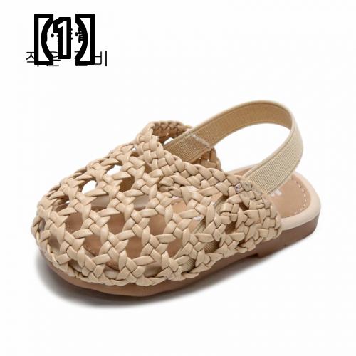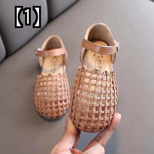サンダル キッズ 女の子 痛くない つま先あり ストラップ 夏 ビーチ 編み ベビー 柔らかい シンプル カジュアル ベージュ キャメル