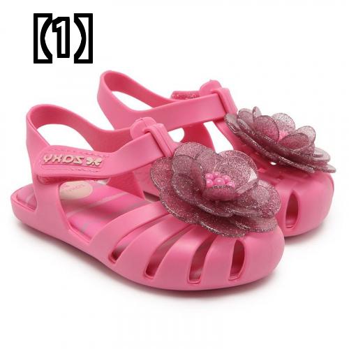 ジェリーサンダル キッズ 女の子 ベビー 透明 ストラップ つま先あり 軽量 滑り止め 痛くない 履きやすい 通気性 かわいい きらきら プール 水遊び 海 ピンク 赤 青 花 リボン 花