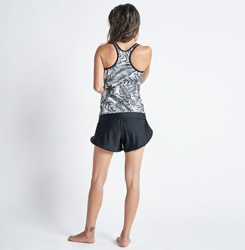 トップ素材1:ナイロン80% ポリウレタン20% 素材2:ナイロン100% S/身幅:33.5・総丈:54cmM/身幅:36・総丈:56cmL/身幅:40・総丈:59cmボトム素材1:ナイロン80% ポリウレタン20% 素材2:(ショーツ) ポリエステル91% ポリウレタン9% S/ウェスト:64・ヒップ:96・股上:27.5・股下:8・裾幅:32cmM/ウェスト:67・ヒップ:97・股上:28・股下:8・裾幅:32cmL/ウェスト:73・ヒップ:100・股上:29.5・股下:8・裾幅:34.5cm