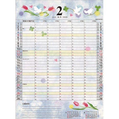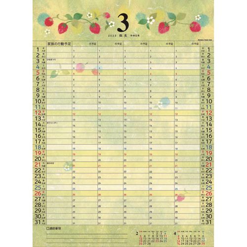 壁掛けカレンダー2023年 2023Calendar 家族カレンダーL 色暦 5人用スケジュール APJ 書き込み ファミリー 便利 予定表 SIAA 抗ウイルス加工 令和5年暦 予約スケジュール おしゃれ カレンダー シンプル デザイン毎年好評いただいている[家族カレンダー]が2023年も登場和紙の優しい絵柄がなごむ、それぞれの予定が書き込めて、一目で確認できる便利なカレンダーです。